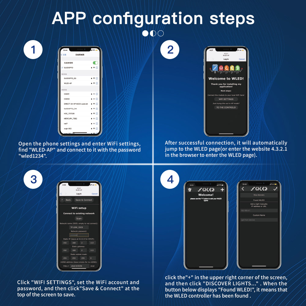 - Předinstalovaný WLED: Zapomeňte na složité flashování. Ovladač přichází s oblíbeným open-source softwarem WLED, který nabízí stovky efektů, palet barev a možností automatizace.