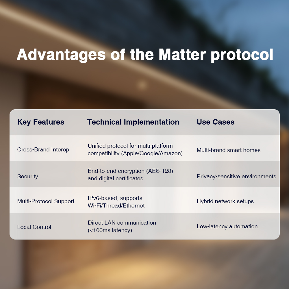 - Protokol Matter: Srdcem tohoto ovladače je podpora protokolu Matter, který zajišťuje bezproblémovou integraci s ekosystémy různých výrobců (Apple Home, Google Home, Amazon Alexa, Samsung SmartThings a další). Užijte si jednoduché párování bez složité konfigurace a jednotné ovládání všech vašich chytrých zařízení.