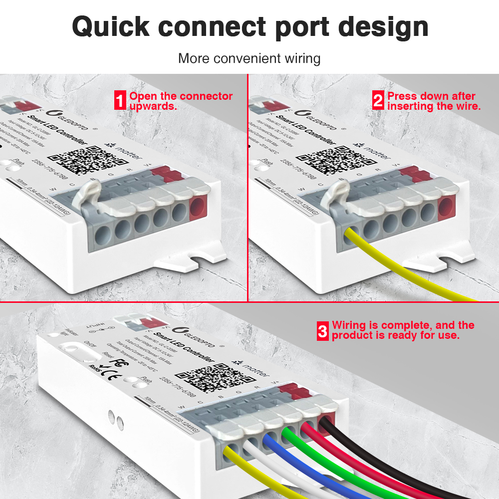 Gledopto GL-C-208M je ideální pro vytvoření dynamických a plně přizpůsobitelných světelných scén ve vaší domácnosti nebo komerčních prostorách. Objevte jednoduchost a výkon protokolu Matter s tímto pokročilým RGBCCT LED ovladačem.