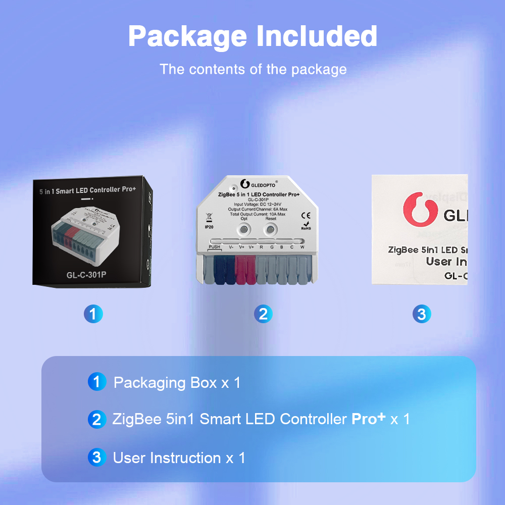 Gledopto GL-C-301P je ideální pro ty, kteří hledají kompaktní, vysoce funkční a spolehlivý LED ovladač s podporou chytré domácnosti.