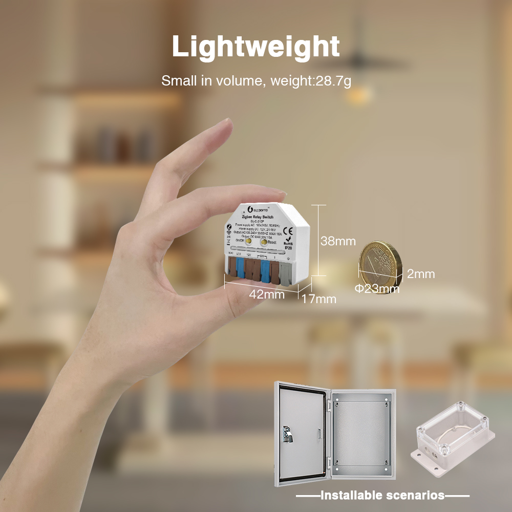 Gledopto GL-C-310P je kompaktní a všestranný ZigBee relé spínač, který přináší chytrou funkcionalitu do vaší stávající elektrické instalace. S jeho malými rozměry (42x38x17mm) jej lze snadno umístit za vypínač do krabice, do svítidla nebo jinam, kde je potřeba diskrétní, ale efektivní chytré ovládání.