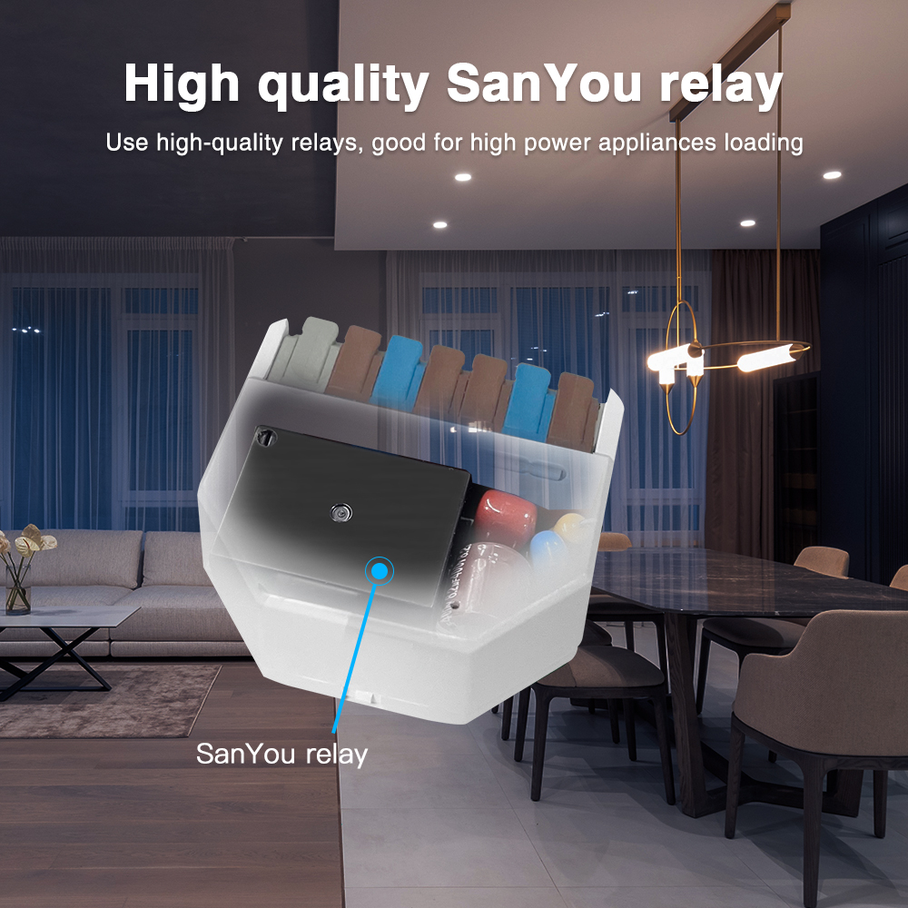 - Vysoká spínací kapacita: S maximálním spínacím proudem 16A pro AC a 10A pro DC můžete ovládat i výkonnější spotřebiče a osvětlení.