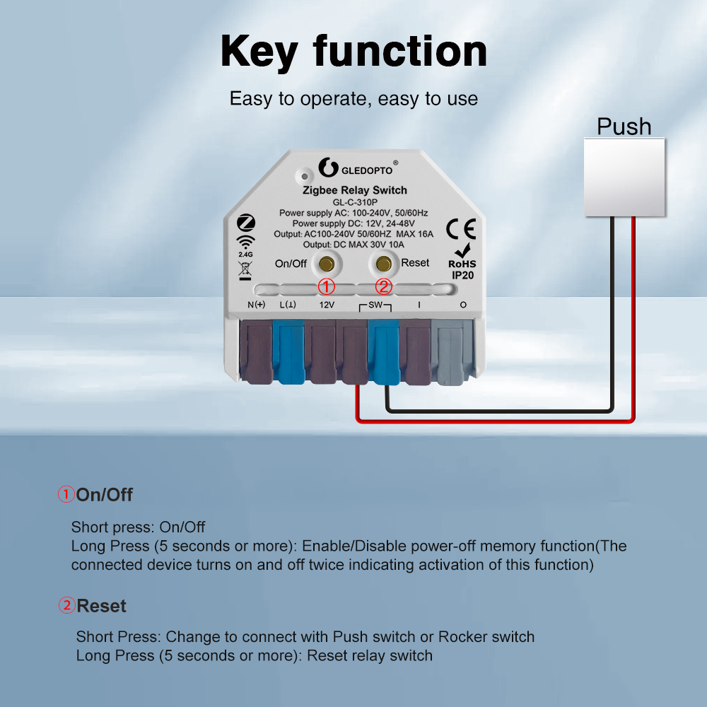 S Gledopto GL-C-310P získáte jednoduché a efektivní řešení pro automatizaci a chytrou kontrolu nad vašimi elektrickými zařízeními, což zvyšuje komfort a energetickou účinnost vaší domácnosti.