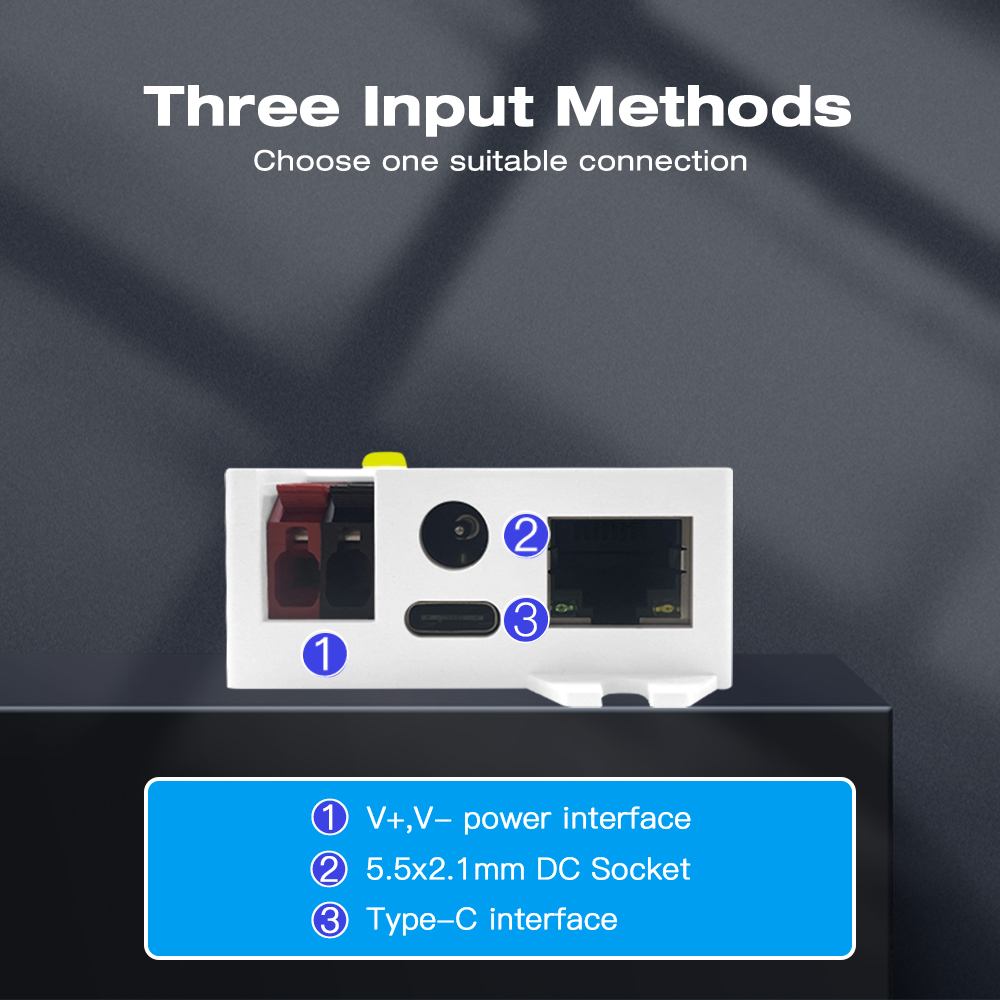 - Vstupní napětí: Široký rozsah DC 5V, 12V nebo 24V.