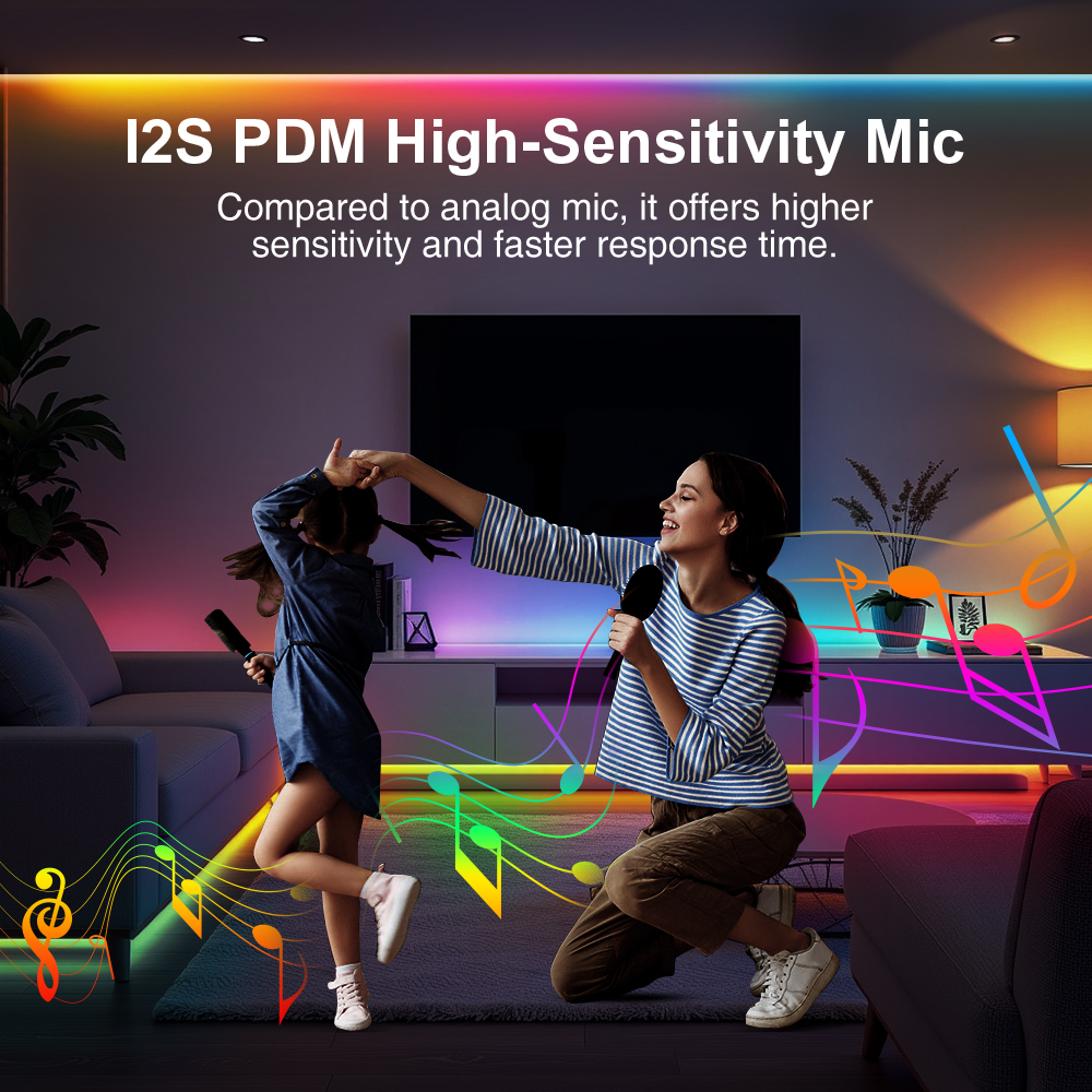 - Integrovaný mikrofon pro audio reakci: Jednou z hlavních předností je zabudovaný mikrofon, který umožňuje ovladači reagovat na hudbu a zvuky z okolí. Světlo se dynamicky synchronizuje s rytmem, čímž vytváří působivé vizuální zážitky.