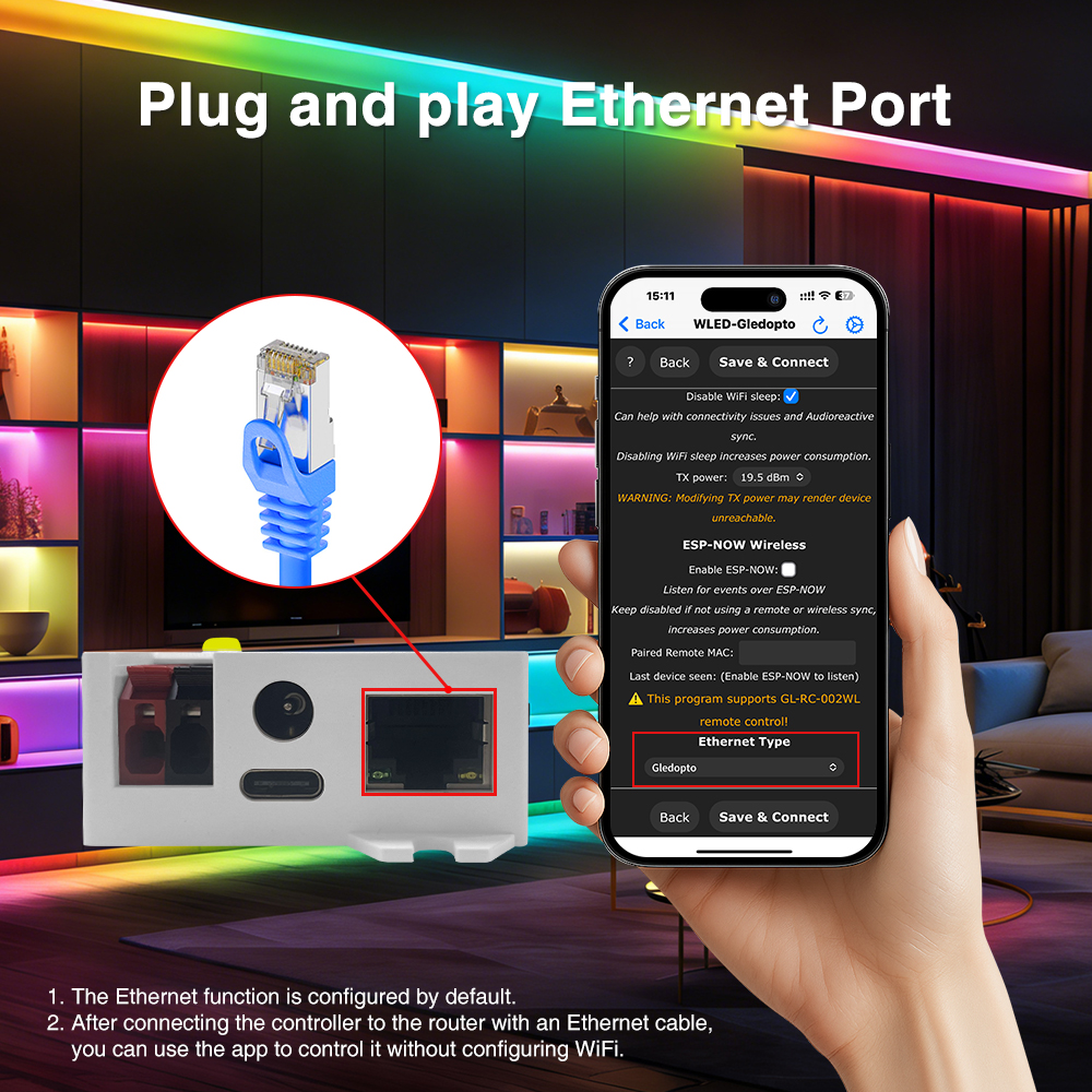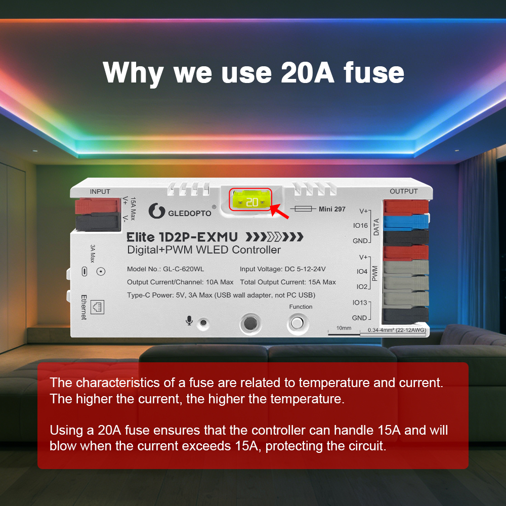 Gledopto GL-C-620WL Elite je profesionální nástroj pro architektonické osvětlení, dynamické ambientní scény, podsvícení TV nebo herní koutky, kde je kladen důraz na vizuální kvalitu a spolehlivé ovládání.