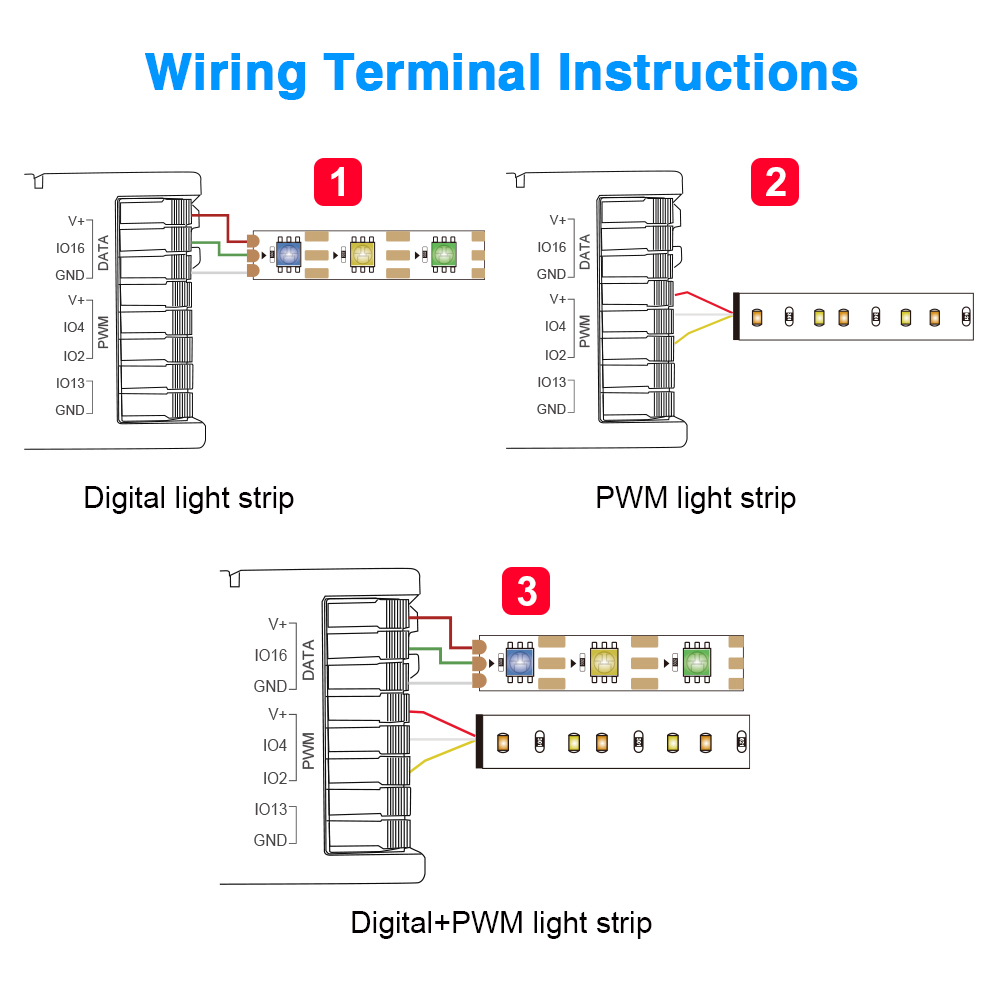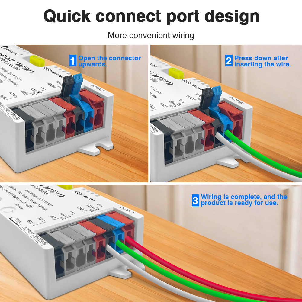 - Duální podpora LED pásků (Digital + PWM): Tento ovladač je navržen tak, aby dokázal řídit oba základní typy LED pásků. Můžete tak vytvářet komplexní scény s pixelovými efekty i plynulým stmíváním standardních barevných nebo bílých pásků.