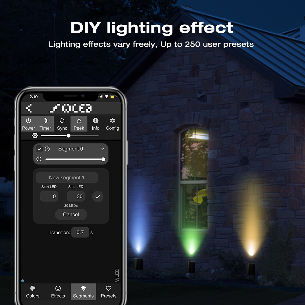 - Digitální RGBIC technologie: Světlo GL-G-005WL využívá technologii RGBIC (RGB Individual Control), což znamená, že jednotlivé segmenty nebo LED čipy uvnitř světla mohou zobrazovat různé barvy nezávisle na sobě. To umožňuje vytvářet plynulé barevné přechody, animace a dynamické efekty, podobně jako u digitálních LED pásků.