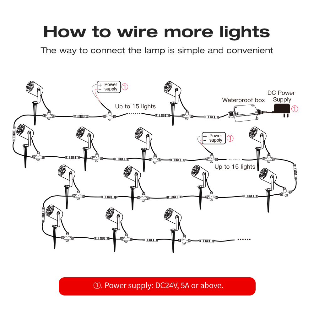 - Výkon a napájení: S příkonem 7W a napájením DC 24V poskytuje dostatečný jas pro venkovní použití.