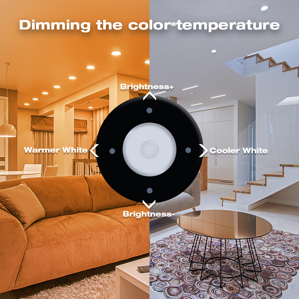 - Paměťová funkce: Ovladač si pamatuje poslední nastavení jasu a teploty barvy.