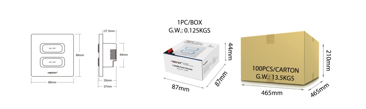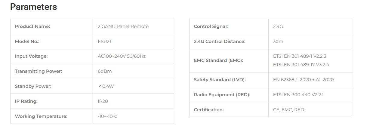 - Typ zařízení: 2-kanálový (2-gang) panelový bezdrátový ovladač