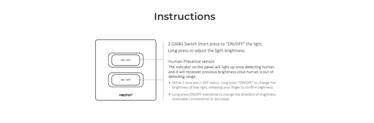 MiBoxer ESR2TW: Chytrý 2-kanálový 2.4G panelový ovladač s detekcí přítomnosti, bílí
