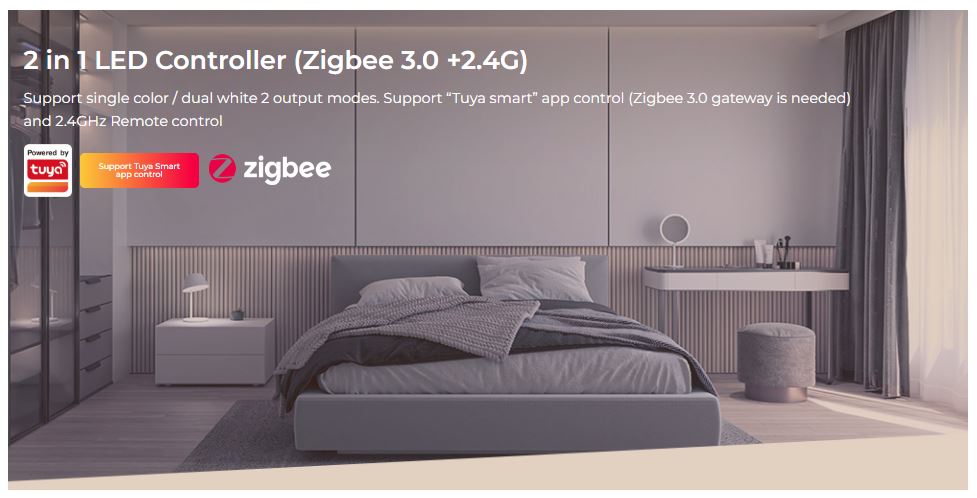 MiBoxer FUT035Z+ ZigBee 3.0 + RF2,4GHz Smart LED kontroler 2 v 1 jednobarevné a dvoubarevné CCT LED