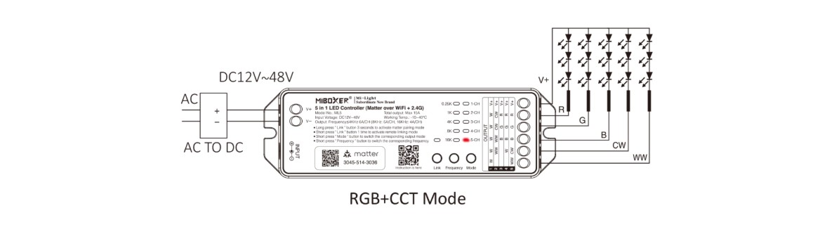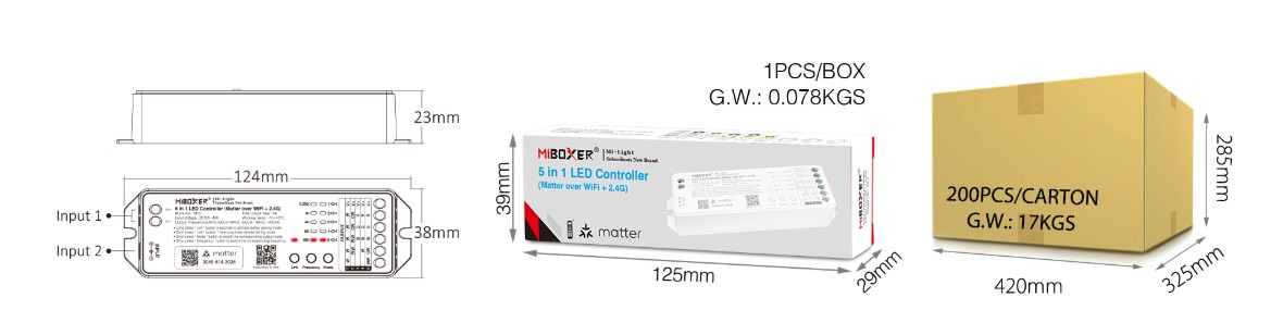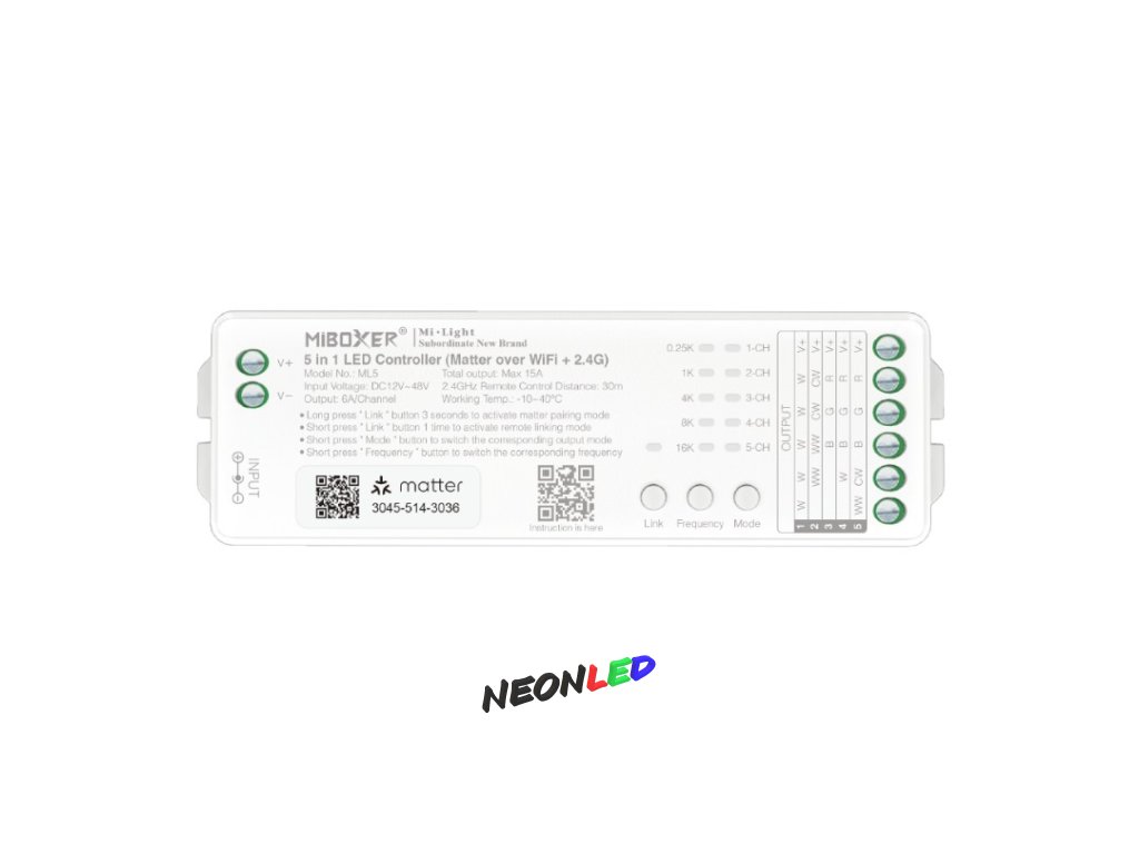 MiBoxer ML5 - Matter WiFi Smart LED kontroler 5v1 pro MONO, CCT, RGB, RGBW a RGB+CCT LED