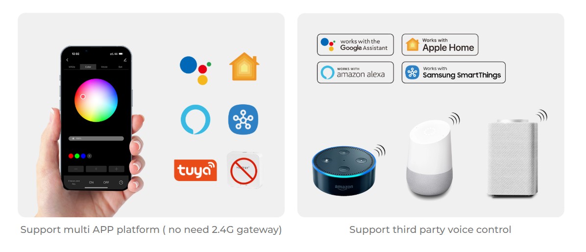 S chytrým LED kontrolérem MiBoxer ML5 se tato vize stává realitou. Tento malý, ale neuvěřitelně výkonný mozek vašeho osvětlení přináší revoluční standard Matter, který sjednocuje svět chytré domácnosti. Zapomeňte na zmatek s kompatibilitou – ML5 si bezchybně rozumí s ekosystémy jako Apple Home, Google Home, Amazon Alexa nebo Samsung SmartThings. Stačí naskenovat QR kód a váš LED pásek se stane plnohodnotnou součástí vaší chytré domácnosti.