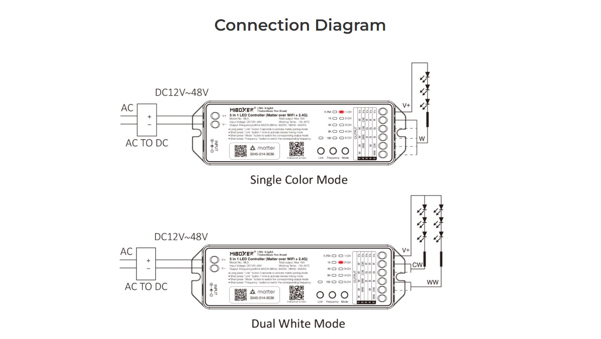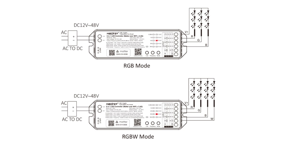 Proč kupovat pět různých kontrolérů, když vám stačí jeden? MiBoxer ML5 je navržen jako ultimátní řešení pro jakýkoliv typ LED pásku. Jednoduše pomocí tlačítka zvolíte režim, který potřebujete: