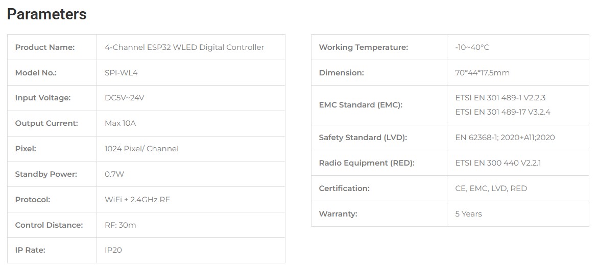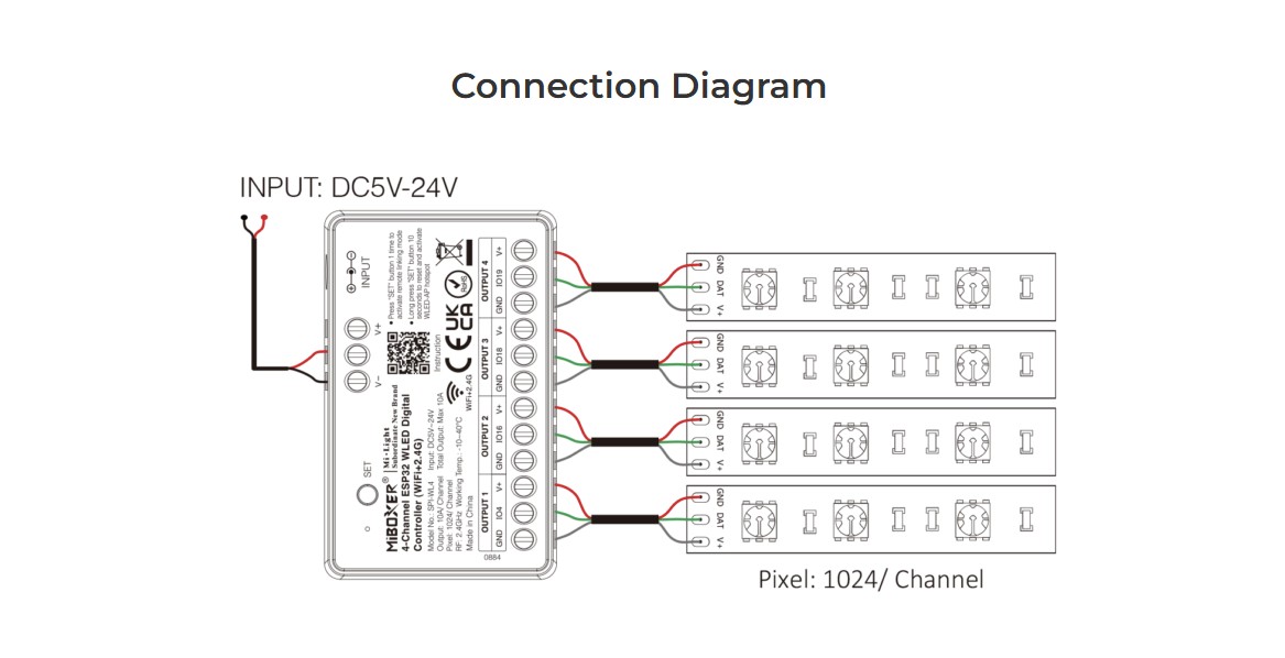 MiBoxer SPI-WL4: 4-kanálový WLED ovladač s ESP32 a WiFi/2.4G – Až 4 x 1000+ pixelů na kanál