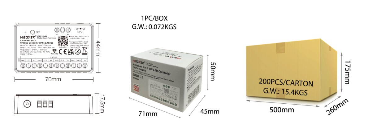 - 2.4G Dálkové ovladače: Pro rychlou a spolehlivou akci bez nutnosti otevírat telefon. SPIW5-4 je kompatibilní s celou řadou MiBoxer/Mi-Light dálkových ovladačů (prodávají se samostatně).