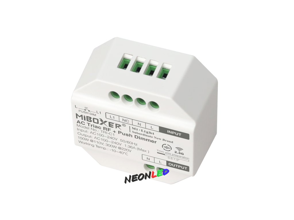 MiBoxer TRI-C1 triakový stmívač RF 2,4GHz + tlačítko, 230VAC, 300W