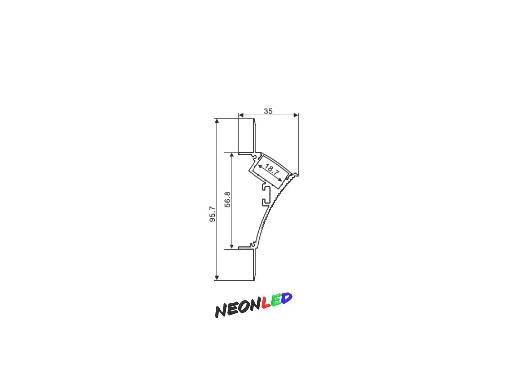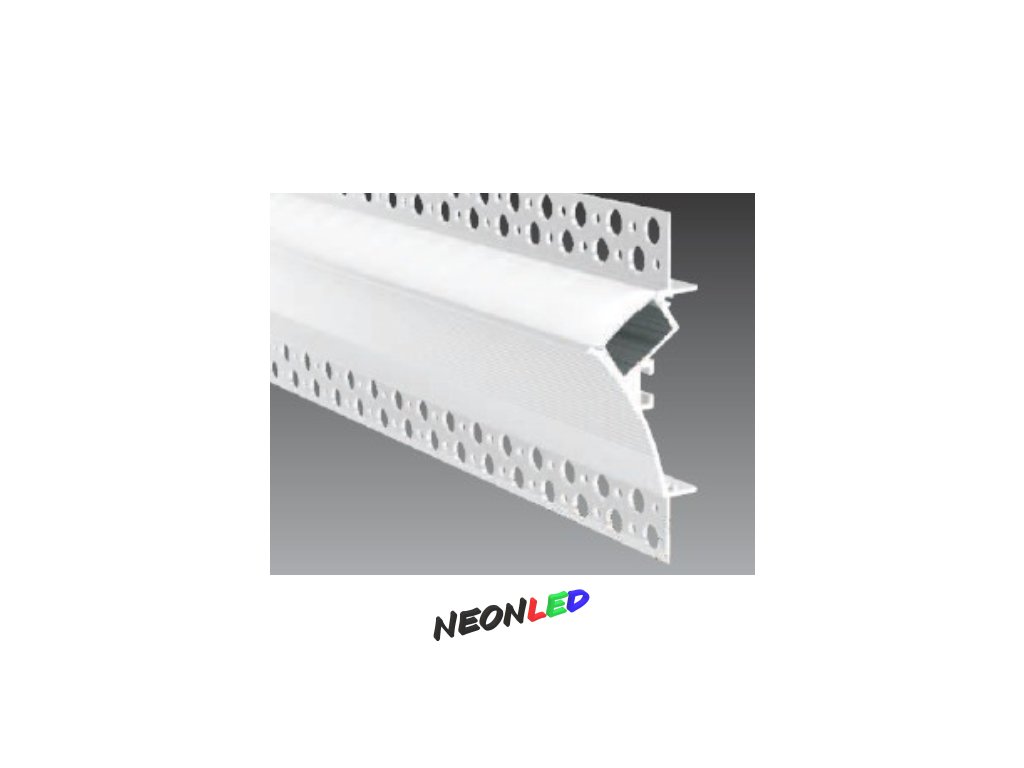Profil je vyroben z vysoce kvalitního hliníku, navržen pro pružné nebo tuhé LED pásy, které jsou široké 18,7 mm, LED diody lze schovat za speciální kryt z polykarbonátu. Kryt je certifikován pro vynikající odolnost vůči všem povětrnostním podmínkám, UV záření a zpomaluje hoření. Standardní polypropylenový konec se používají k vytlačování jako doplňkové příslušenství. Koncovky chrání profil před prachem a jinými nežádoucími prvky, které mohou LED pásy zašpinit a následně zhoršit světelné parametry. Profil se instaluje do sádrokartonu pomocí vhodného montážního lepidla nebo montážních šroubů. Měli byste nanést vrstvu lepidla na přírubu a nanést síťku, utěsněte ji výplní a když je suchá, přebruste ji a vymalujte. Ve výsledku dostaneme čáru světla v rovinách stěny a stropu bez viditelných hliníkových částí.