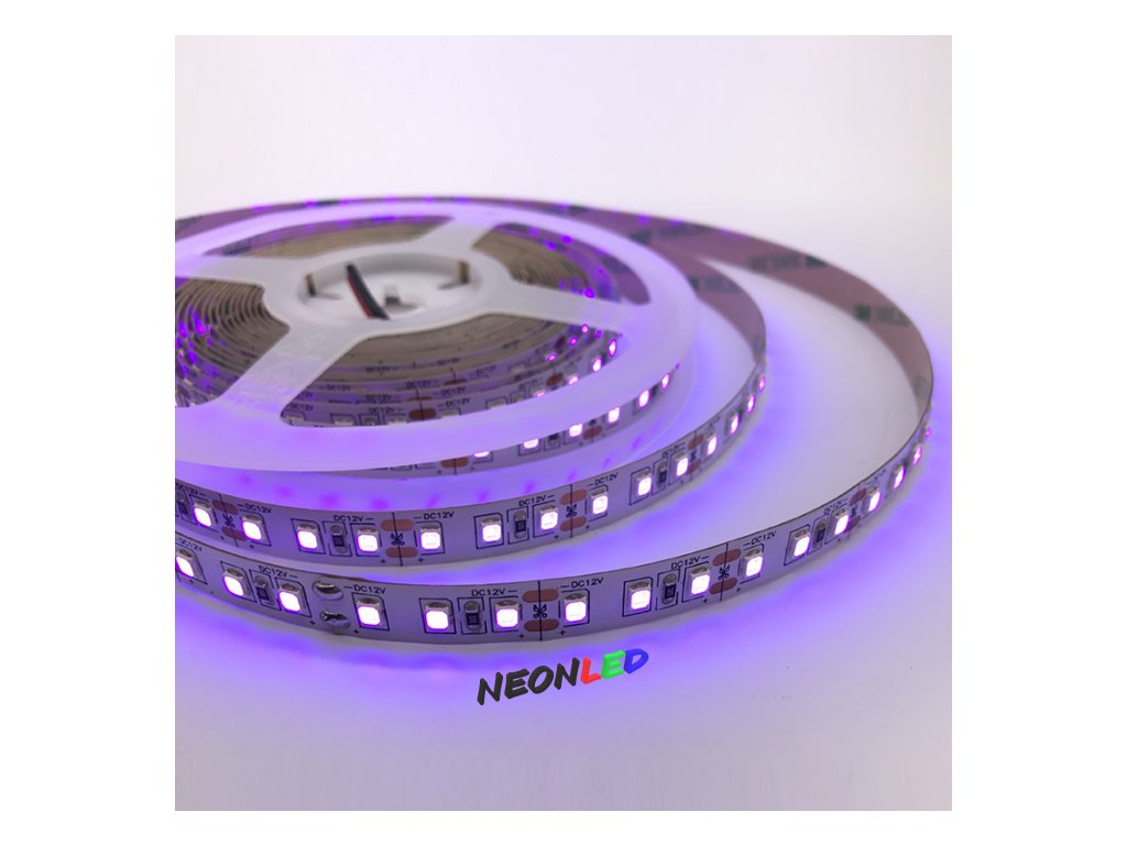 SLL-UVA2835-12W UVA flexibilní LED pás 12V, IP20, 12W/m, 120led/m, 8mm