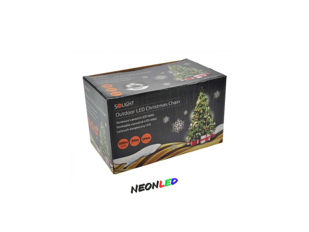 Solight 1V04-W LED vánoční řetěz, 300 LED, 30m, přívod 5m, IP44, studená bílá