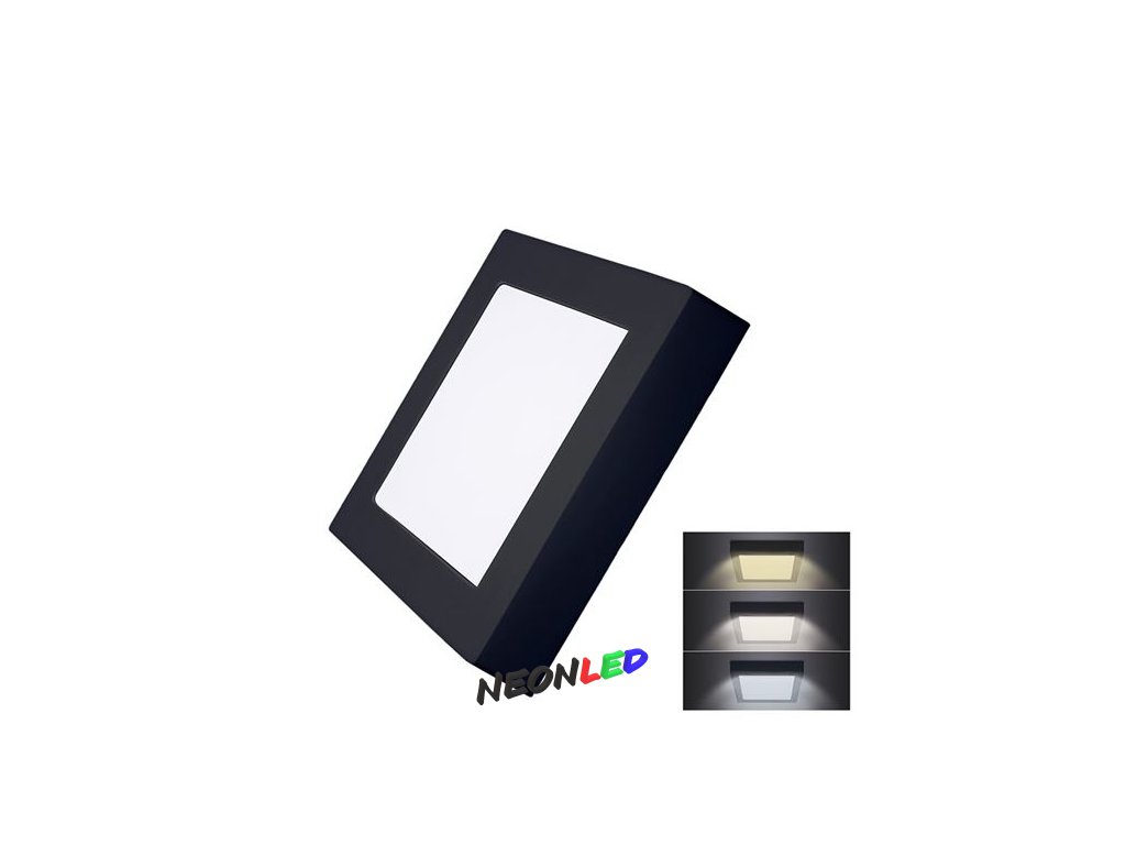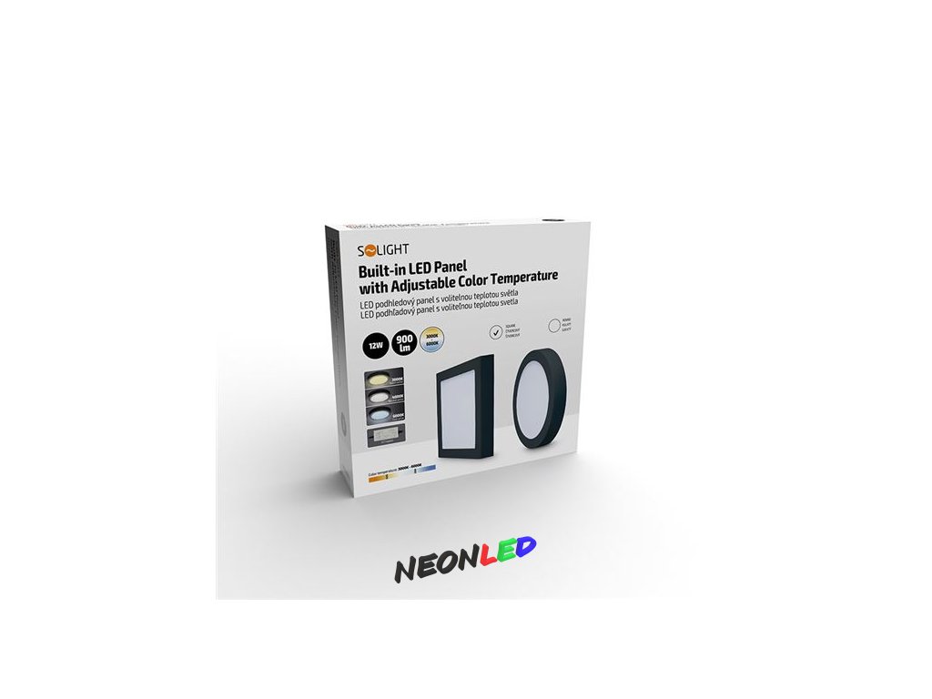 Solight WD171-B LED mini panel CCT, přisazený, 12W, 900lm, 3000K, 4000K, 6000K, čtvercový, černý