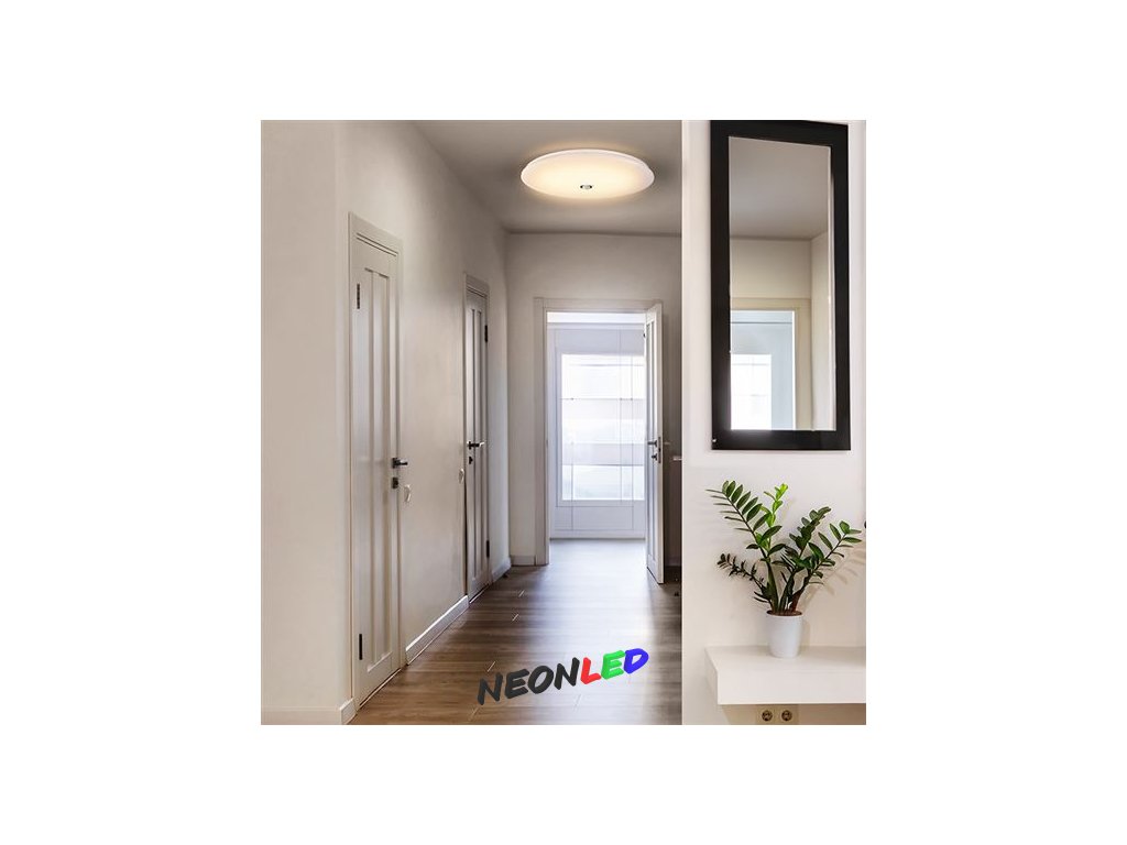 - Kompaktní a elegantní design: Kulaté svítidlo v čisté bílé barvě (Ø33cm) se diskrétně začlení do každého interiéru.