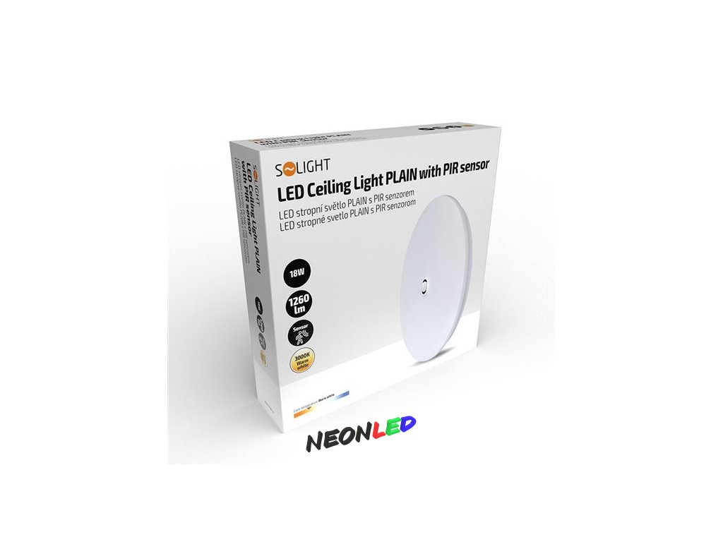 Solight WO776 LED stropní svítidlo PLAIN s PIR senzorem, 18W, 1260lm, 3000K, kulaté, 33cm